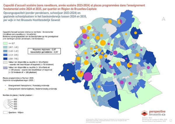 Sinds 2010 laat die monitoring een aanhoudende inspanning zien om nieuwe schoolplaatsen te creëren. 67.206 plaatsen werden gecreëerd of gepland in het Brussels Hoofdstedelijk Gewest: